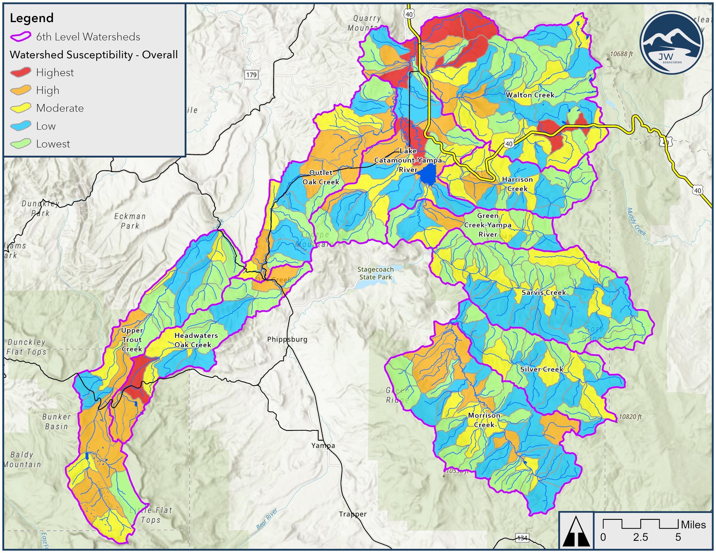 The Wildfire Ready Action Plan is focused on the impacts from post-wildfire hazards and examines the long-term risk that is posed by ecosystem changes over time. The Steamboat Front project area extends from the watersheds of the Steamboat Front on the east side across the Yampa River Valley, to Upper Trout and Oak Creeks on the west side.