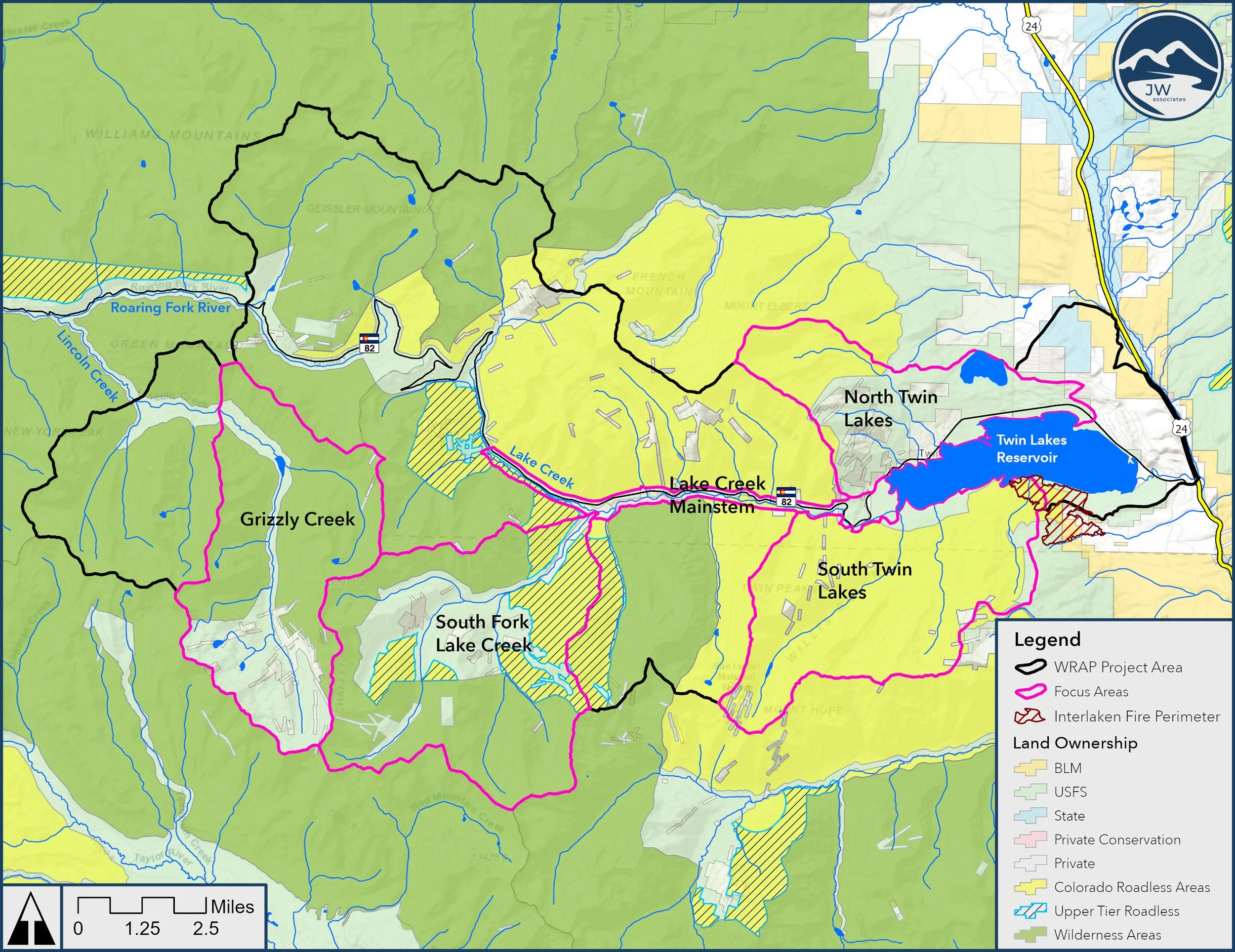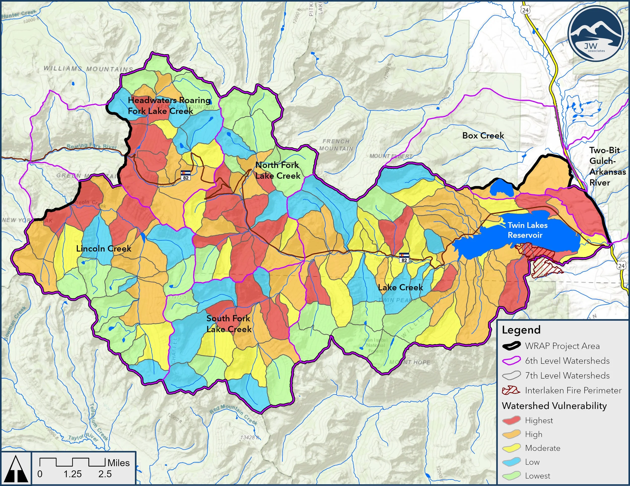 Arkansas River Watershed Collaborative is facilitating a Wildfire Ready Action Plan (WRAP) for the Twin Lakes Reservoir area and contributing upstream watersheds. The Interlaken Fire burned 700 acres in 2024 on the south side of the Reservoir, which directly impacted water quality of the Twin Lakes Reservoir. This reservoirs is a critical water supply for the cities of Colorado Springs, Aurora and various other counties.